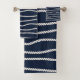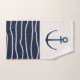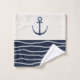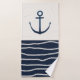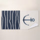 Sobre una serie de líneas ondulantes de cuerda se ha colocado un ancla de color marino, creando un tema náutico. La imagen tiene una estética simple y minimalista con un enfoque en los símbolos marítimos.