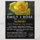 Rosa amarilla, florista, floristería, volante publicitario por la tienda de tarjetas de visita.