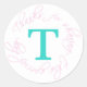Rosa, Aqua Monograma T Gracias Pegatina 4