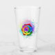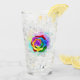 Rosa grande y floreciente con pétalos de arco iris sobre fondo blanco, pintado con salpicaduras de pintura colorida y brillante. 3.ª