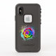 Rosa grande y floreciente con pétalos de arco iris sobre fondo blanco, pintado con salpicaduras de pintura colorida y brillante. 3.ª