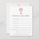 Dejemos que los bebés se duchen y compartan sus deseos de bebé con estas tarjetas dulces que incluyen una lista de mensajes y espacio para que los invitados firmen sus nombres. Coloque una pila en la entrada del evento, párela o deje una en cada lugar. También hace una broma para la futura mamá cuando se recopila en una caja de bonito o un encuadernador. El diseño presenta un ilustracion de globo de aire caliente de color rosa y melocotón en la parte superior con letras modernas y un sutil patrón de diamante punteado en el reverso.