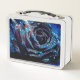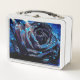 Esta caja de almuerzo tiene un rosa azul.