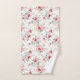 Hermosas flores rosas, azules y blancas con follaje en este juego de toallas de baño. El conjunto incluye toalla de mano, toalla de baño y paño de lavado. Se puede comprar como un conjunto o individualmente.