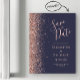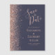 El borde izquierdo de esta elegante tarjeta para guardar la fecha magnética cuenta con un borde purpurina de imitación de oro rosa. El texto del personalizable combina escritura a mano rosa rosa, copperplate y tipografías cursivas en un fondo azul oscuro.