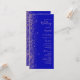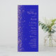 El borde izquierdo de este elegante y moderno programa de bodas cuenta con un diseño purpurina de imitación de oro rosa. El texto del personalizable combina la escritura a mano de color rosa pálido, la copperplate y las letras cursivas en un fondo azul real.