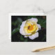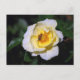 Rosa blanca y amarilla con postal de abeja de miel