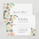 Una tarjeta RSVP elegante y romántica para un boda con plantillas para responder por fecha y nombre. Un fondo blanco moda. Decoradas con flores de color agua exuberante, florales - rosas y peonías en blanco, crema, coral y melocotón. El título Kindly Reply está escrito con un gran guión moderno de estilo escrito a mano. Atrás: Florales y plantillas para sus nombres y la fecha de boda. Fondo blanco. Esta tarjeta también está disponible en nuestra tienda con fondo de coral en la parte posterior.