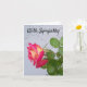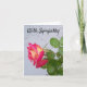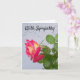 Rosa con gotas de lluvia en las hojas y fondo texturado gris en una tarjeta de simpatía interior en blanco