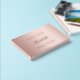 Un libro de invitados para una fiesta de cumpleaños glamurosa y femenina de 21 años (o de cualquier edad). Oro rosa de diseño, fondo degradado rosa. Añade tu nombre, edad 50/texto. Con texto de Relieve metalizado plateado real.
