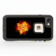 Rosa en llamas del fuego y la llama sobre fondo negro.