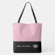 Esta bonita y elegante bolsa de tetas se muestra en un estilo de bloque de color rosa y negro con una corona de concurso y texto personalizado.