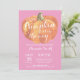 Tarjeta de la invitación de Baby Shower de la caída de la calabaza del chica con el fondo rosado. Para el arreglo para requisitos particulares adicional, haga clic por favor el "personalizar él" botón y utilice nuestra herramienta de diseño para modificar esta plantilla.