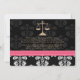 Añada su foto o imagen preferida a estas invitaciones e invitaciones florales blancos y negros elegantes y formales de la graduación del colegio de abogados del damasco con las escalas de un oro del diseño de la justicia y del diseño cosido las rosas fuertes fucsias impreso de la mirada de la cinta. Modifiqúela para requisitos particulares para decir lo que usted quiere en el el trasero y delantero de las invitaciones y de las invitaciones de la graduación del graduado del abogado. © Chrissy H. Studios, LLC de las ilustraciones. Todos los derechos reservados.