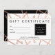 Coordina con la plantilla de la tarjeta de presentación Gold Bobby Pins Hair Stylist Salon del Rosa de la Moda antes de las 12.01 horas. Un diseño divertido y llamativo de los falsos rosas de bobby de oro en caída crea un entorno intrigante en esta plantilla de certificado de regalo de personalizable para peluqueros, peluquerías, consultores de belleza y más. Arte y diseño © 1201AM CREATIVE