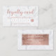 Una tarjeta de fidelización moderna y elegante para el cabello y maquillaje de la tarjeta de visita de los artistas con letras modernas estilo tipografía de pincel a mano en un falso Relieve metalizado de oro rosa sobre un elegante y moderno fondo de mármol blanco. Si necesitas alguna personalización, no dudes en contactarme