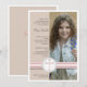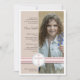 Un adorable esquema de color rosa pastel y tonos suaves en color tostado incluye un diseño de cruz y una foto vertical de tu hija, creando una invitación a la bonito para reunir a familiares y amigos para tu celebración especial.