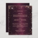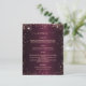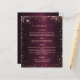 Un menú elegante y glamuroso. Un fondo degradado de color burdeos, adornado con destellos de oro rosa. Texto de oro Rosa. Personalice y agregue el menú. Puede añadir más texto, fotos en la parte posterior. 1 hoja = 1 borde impreso del menú a borde.