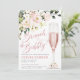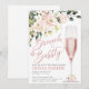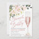 El Bridal Shower invita a relajarse con flores rosadas en oro subió, copa de champán y letras brillantes. Este diseño es ideal para alguien que tenga una ducha de brunch.