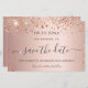 Una chica y de moda Guardar la tarjeta de fecha para una fiesta de cumpleaños número 40 (o cualquier edad). Un fondo dorado rosa y rosa femenino decorado con chispas falsas. Personalice y agregue una fecha y nombre/edad 40. Letras de color oro rosa oscuro. El texto: Save the Date se escribe con un gran guión de estilo escrito a mano.