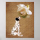 Un cachorro dálmata lindo oliendo una delicada rosa blanca en textura con un aspecto de papel envejecido poster impreso .