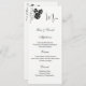 Esta plantilla de tarjeta de menú se muestra en el papel básico en blanco con un bonito diseño de impresión en rosa negro. Guión y texto estándar en color negro. Personalizar los nombres y elementos de menú haciendo clic en el botón personalizar, busque a la derecha y busque los cuadros apropiados para cambiar a su información. Imprimir material