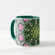 Esta taza es como una pequeña pieza de arte para tu mesa. Es esta hermosa sombra de verde, como una hoja de primavera fresca, y justo en el centro, hay un impresionante diseño de mandala. La mandala está inspirada en una rosa rosa rosa, así que tiene estos encantadores y complejos patrones que giran y fluyen, casi como pétalos que se despliegan. Los rosa son suaves y delicados, mezclándose con gusto con el fondo verde. Es el tipo de taza que no sólo agrega un pop de color sino que también trae un sentido de calma y belleza a cualquier espacio. Perfecto para un rincón acogedor o para hacer declaraciones.