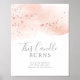 Esta rosa dorado acuarela esta vela arde señal es perfecta para una boda elegante. El diseño caprichoso presenta acuarela rosa suave neutral con hermoso brillo dorado rosa falso.