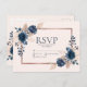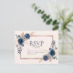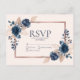 Moderna y de moda, esta tarjeta de recinto del RSVP matrimonial tiene flores de color rosa en azul marino y rosa polvoriento, con una caja de texto de imitación de Relieve metalizado de oro rosa. Copyright Elegant Invita, todos los derechos reservados.
