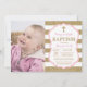 Rosa e invitación del bautismo del purpurina del oro con la foto de encargo. Bautismo del chica. Primera comunión. Bautizo. Esmero del niño. Oro y rayas blancas. Para el arreglo para requisitos particulares adicional, haga clic por favor el "personalizar él" botón y utilice nuestra herramienta de diseño para modificar esta plantilla.