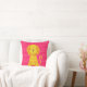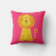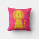 Bonito, niñita, colorida, audaz, moderna describe este diseño estampado de almohada de rayas de chevron rosadas y rosas profundas con un león de rayas doradas que lleva una corona dorada a cada lado.