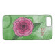 Este Rosa Funda On Green iPhone 6 presenta una rosa rosa rosa sobre un fondo de arte digital verde para un aspecto chic y chic.