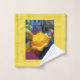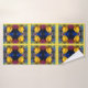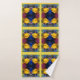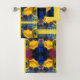 El cuarto de baño es luminoso y cuenta con una bonita bañera. Hermoso diseño de rosa amarillo en tela de lavabo, toalla de mano y toalla de baño.