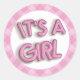 Celebra la llegada de tu bebé con este encantador pegatina rosado "Es un Chica". Perfecto para sellar sobres, decorar bolsos de bienvenida o añadir un toque especial a la decoración fiesta. Este pegatina redondo mide 1,5" de diámetro y está impreso en papel de alta calidad, sin ácido. Personalice el texto para que su evento sea realmente especial.