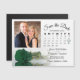 Estas bellas tarjetas magnéticas son la manera perfecta de hacer saber a tu familia y amigos que ahorran la fecha para tu próximo boda. El diseño romántico incluye un único rosa de color verde esmeralda, de tallo largo, que se encuentra en su lado reflejando o reflejado en un estanque de agua con una foto encima. A la derecha hay un calendario de personalizables que muestra el mes de su boda con un corazón alrededor de su día especial. Conveniente y práctico, esta tarjeta le gustará.