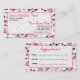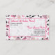 Una tarjeta de visita del cosmetologist/del salón que ofrece un diseño del fondo que consiste en ilustraciones de monederos, del lápiz labial, de botellas de perfume, de diamantes rosados, y de gafas de sol del ojo de gato. Personalice el frente con su información de contacto comercial. Utilice de nuevo a escriben la información de la cita.