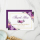 Tarjeta de agradecimiento de boda floral acuarela púrpura violeta ultra dorada - reverso púrpura
