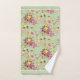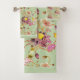 Set de toallas. Hermosa muestra de flores rosadas respaldadas en verde sabio suave.