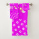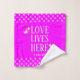 Moderno y elegante conjunto de toallas de baño de CRISTIANO HOT PINK, diseñado con LOVE LIVES AQUÍ en tipografía blanca y referencia de las Escrituras de PERSONALIZABLE que puedes personalizar añadiendo tu nombre (familiar). 1 Juan 4:16 dice: "Dios es amor, y el que permanece enamorado permanece en Dios, y Dios en él". El diseño incluye la tipografía serif blanca con gráficos de doble corazón opcionales, que puede borrar si lo desea. Elementos y otros colores disponibles.