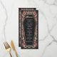 Añade un toque de elegancia gótica a tu fiesta con estos menús bodas con un marco en forma de ataúd, adornado con espinas, rosas y acentos de oro rosa sobre un fondo negro. Ideal para una cena romántica. Personalice el texto, la fuente y el color de fondo para que se ajusten a sus preferencias de diseño. Artículos coincidentes en nuestra tienda para un tema fiesta completo. Tenga en cuenta que el oro rosa de las tarjetas NO es Relieve metalizado real y está impreso en colores planos.