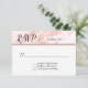 La tarjeta RSVP de la elegancia moderna de respuesta boda hecha en blanco, con un aspecto rosa rosa y dorado rosa en mármol, a lo largo de la parte superior y cubriendo la parte posterior. El texto del personalizado está listo para personalizar según sus necesidades. Hay productos que coinciden.