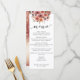 Relájese con esta exquisita tarjeta de menú. Diseñar coordinando nuestras invitaciones para eventos Rosa Gold. El diseño es independiente, con una decoración floral única de color rosa, melocotón y champán, y en la parte inferior encontrarás tu nombre y fecha. Detalle de tipografía manuscrita manuscrita. De vuelta en un rosa dorado brillante y ramo de flores en la parte superior. También disponible en español.