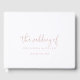 Este rosa libro de bodas de guion dorado es perfecto para un boda rústico. El diseño, sencillo y elegante, presenta una tipografía de escritura clásica y elegante en oro rosa. Personalizar la portada y la columna vertebral para incluir los nombres de la novia y el novio y la fecha del boda.