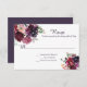RSVP de boda con acuarela con flores acuarela exuberantes en púrpura, violeta, rosa, malva y rojo con verdor a juego. La parte posterior de la tarjeta es un púrpura oscuro. La plantilla es fácil de personalizar: hay elementos de caligrafía manuscrita en púrpura oscuro y una mezcla de una fuente moderna. Invitación de boda a juego disponible.