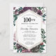 Elegantes rosas morados oscuros y follaje verde decoran esta moderna invitación de cumpleaños número 100.