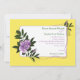 Invitación a una boda floral de color amarillo con rosa violeta violeta y salvaje, con un hermoso rosa salvaje de color púrpura con hojas verdes oscuras, líneas violetas onduladas y elementos de medio tono sobre fondo blanco y amarillo maíz. Este diseño floral contemporáneo con un toque de época es perfecto para una boda de primavera, verano o otoño en el jardín de campo. Este elegante y romántico diseño se puede utilizar para otras ocasiones especiales como compromisos o aniversarios. Esquema de color: violeta morada, amarilla, verde oscuro blanco.
