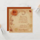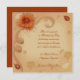 Este hermoso diseño, llamado Naranja Rosa en el otoño, sería una manera elegante y dramática de fijar el tono para su evento. El fondo es de color crema oscuro con un lazo oscuro de color melocotón y hojas de color otoñal. En la esquina superior izquierda hay un magnífico rosa naranja. Esta hermosa invitación es perfecta para su reunión de Acción de Gracias o incluso un fiesta de cena antes de la locura de las vacaciones de los Navidades.
