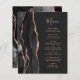 El borde izquierdo de esta elegante y moderna invitación a la boda incluye un borde de ágata color de agua negro recortado con falso rosa purpurina de oro. El texto del personalizable combina guiones de escritura a mano rosa rosa y tipos de letra de copperplate en un fondo no negro. El reverso presenta un diseño de agate de oro negro y rosa a juego.