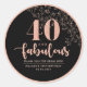 Personalizado "Forty and Fabulous" color negro y rosa de oro cumpleaños ronda etiqueta de favor para con patrones simples, purpurina simulado y letra manuscrita de escritura. Personalizado con su nombre, año de nacimiento/fecha de nacimiento o mensajes cortos propios.