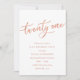Invitaciones de cumpleaños 21ª Rosa Gold: diseño de invitación a fiesta de cumpleaños 21ª con rosa de oro rosa brillante con una apariencia de Relieve metalizado dorado "veintiuno" escrito en tipografía con letras a mano. Las letras contemporáneas rellenan los detalles del fiesta. [Tenga en cuenta que mientras los elementos de este diseño se imprimirán para que parezcan Relieves metalizados, no se utiliza ningún Relieve metalizado real o tinta metálica para crear las invitaciones - el Relieve metalizado de oro rosa es un efecto impreso.]